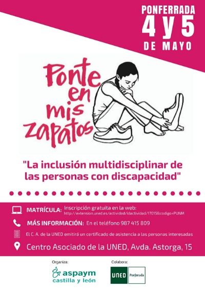 ASPAYM Castilla y León organiza junto con el Centro Asociado de la UNED en Ponferrada, unas jornadas bajo el título “La inclusión multidisciplinar de las personas con discapacidad”, mediante las que se pretende informar, asesorar y orientar sobre el concepto de la discapacidad desde una óptica social e inclusiva, así como ofrecer una visión multidisciplinar de los principales factores que favorecen la inclusión del colectivo. Además, se darán a conocer las herramientas y programas más innovadores que ASPAYM Castilla y León lleva a cabo para mejorar la calidad de vida de las personas con discapacidad como el servicio de Asistencia Personal.