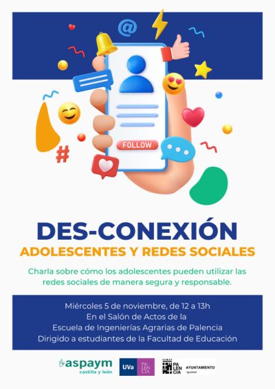 Desde ASPAYM Castilla y León hemos impartido, el pasado 5 de noviembre, la charla “DES-CONEXIÓN: Adolescentes y redes sociales”, dirigida al alumnado de la Facultad de Educación (Universidad de Valladolid).