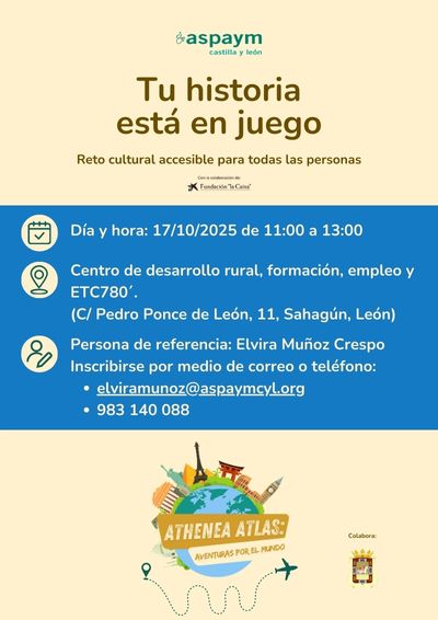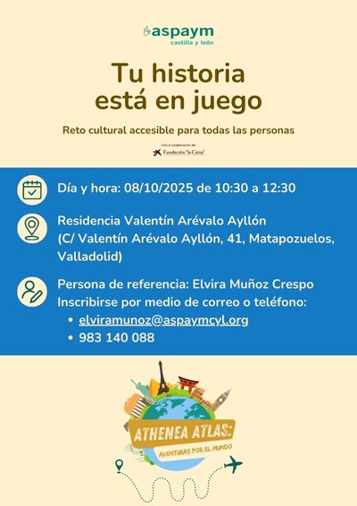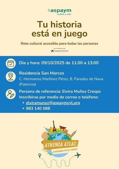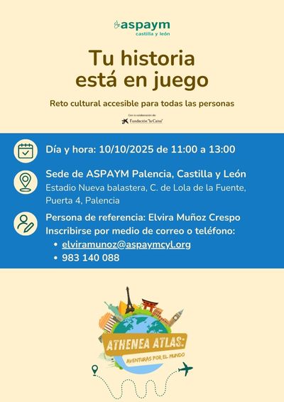 ASPAYM Castilla y León pone en marcha la fase de pruebas de Athenea Atlas: aventuras por el mundo, un proyecto innovador que cuenta con la colaboración de la Fundación «la Caixa», y que combina patrimonio, accesibilidad y gamificación para acercar el patrimonio cultural a todas las personas.