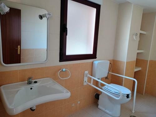 Dispone de 3 dormitorios, 2 baños completos (1 con ducha cota 0, asiento de ducha y barras), salón, cocina, terraza y plaza de garaje (También accesible). Todas las puertas con un ancho de 80 cm, rampa en el portal y ascensor.