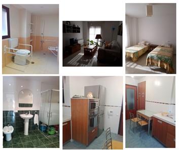 Dispone de 3 dormitorios, 2 baños completos (1 con ducha cota 0, asiento de ducha y barras), salón, cocina, terraza y plaza de garaje (También accesible). Todas las puertas con un ancho de 80 cm, rampa en el portal y ascensor.
